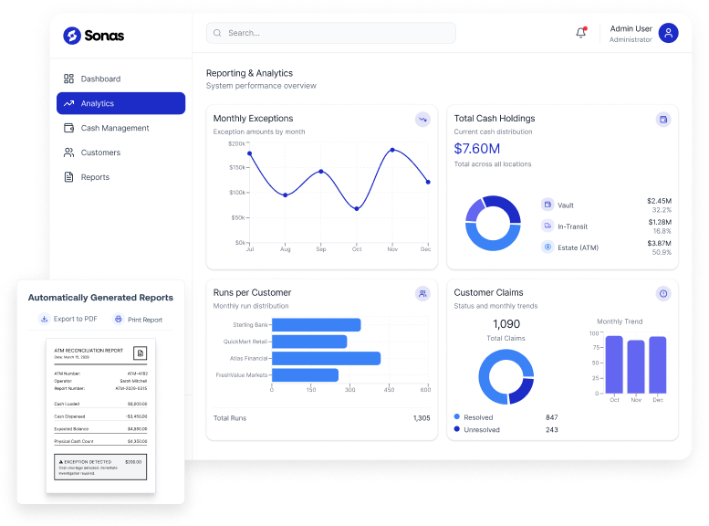 Tap into the power of a fully connected cash operation. Replace your fragmented systems with a unified platform, giving all the control you need, without the complexity.